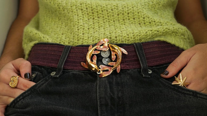 La pieza superior del Cinturón Delfín Rojo, que se adhiere al centro, está hecha de zamak bañado en oro de 24 quilates y tiene una forma circular que aporta un toque adicional de sofisticación. Este Cinturón es el complemento perfecto para cualquier ocasión especial, añadiendo un toque de elegancia y glamour a cualquier conjunto. ¡Sin duda, hará que te destaques con estilo! También puedes combinarlos con nuestros Pendientes Luz.
