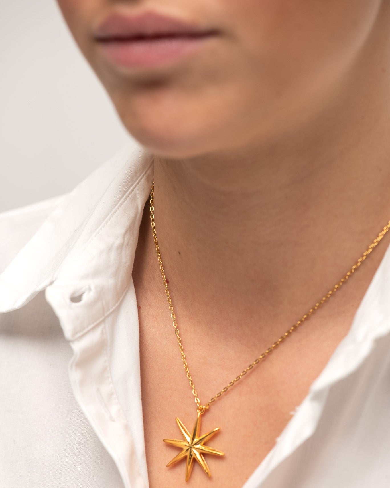 Su cadena fina y delicada realza la belleza de la estrella, creando una pieza armoniosa y atemporal. Cada detalle ha sido cuidadosamente trabajado para garantizar una joya de gran calidad y estilo duradero.