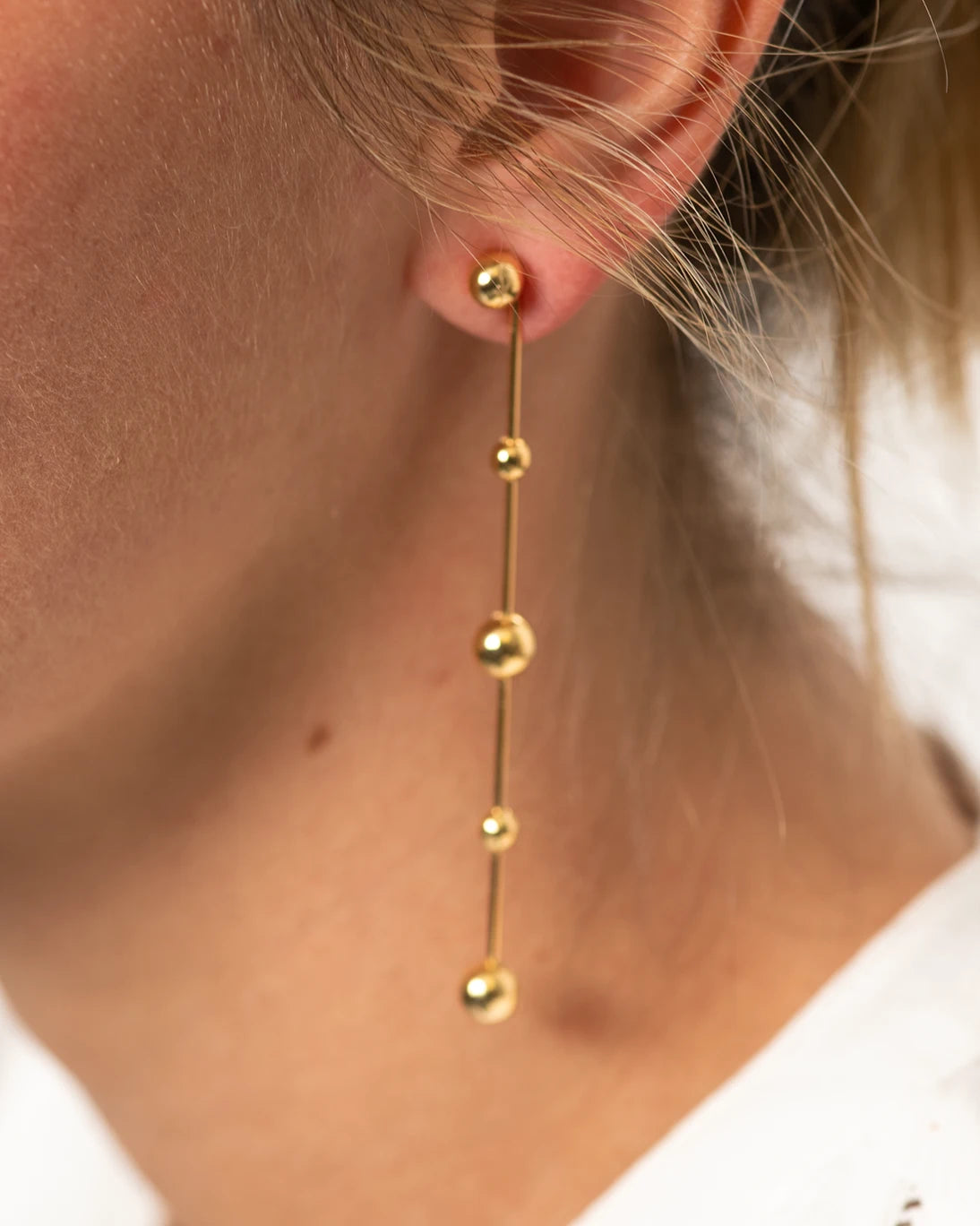 Estos pendientes bañados en oro, elaborados con metal de alta calidad y decorados con pequeñas bolitas, son ideales para cualquier ocasión. El diseño elegante y detallado de los pendientes Satélite añade un toque de lujo a tu estilo, convirtiéndolos en una pieza esencial para cualquier colección de joyería.